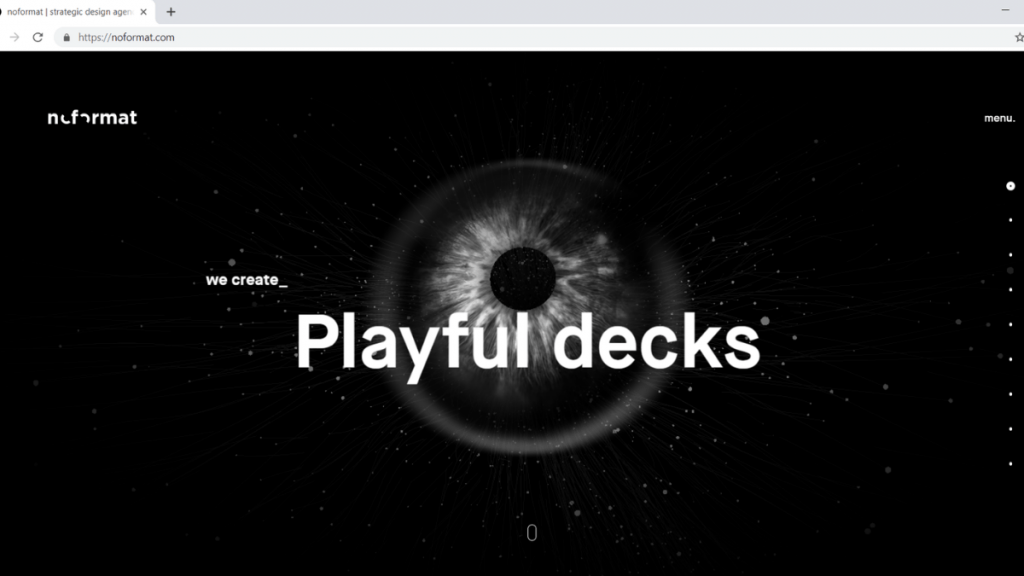 noformat e познато дизајн студио со седиште во Њујорк. На почетната страница се прикажува анимиран дизајн на зеницата на окото,која го следи курсорот на посетителот. Додека се движиме со него, се менуваат циклуси од краток текст што го објаснуваат портфолиото на компанијата и услугите кои тие ги нудат. Минимално, bionic futuristic ?