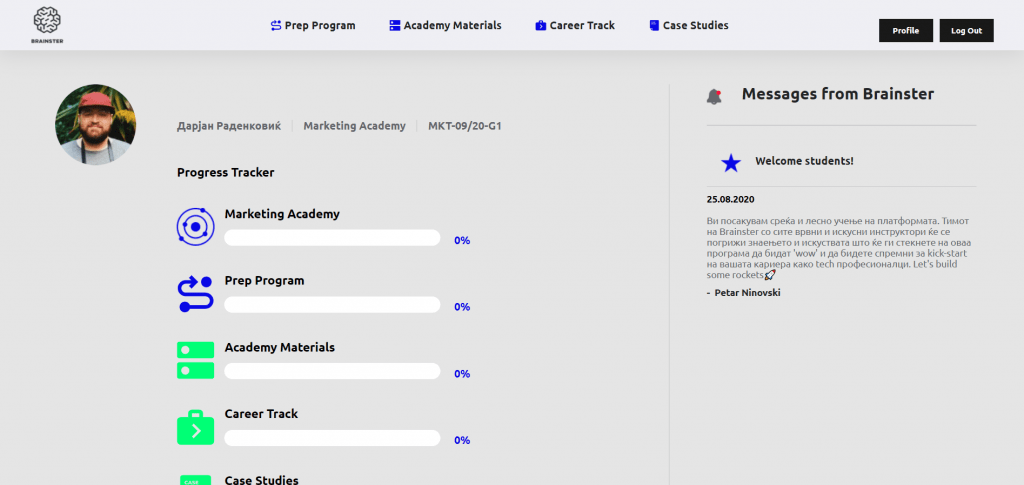 Покрај ова, работевме доста и на унапредување на процесите и иновација во истите. Резултат на тоа е подобрениот onboarding процес, кој овозможува сите студенти да се добро подготвени пред стартот на академијата. Покрај инвестирањето во најиновативните алатки за успешно спроведување настава, развиваме иновативна платформа за учење, на која студентите ќе добијат доживотен пристап.