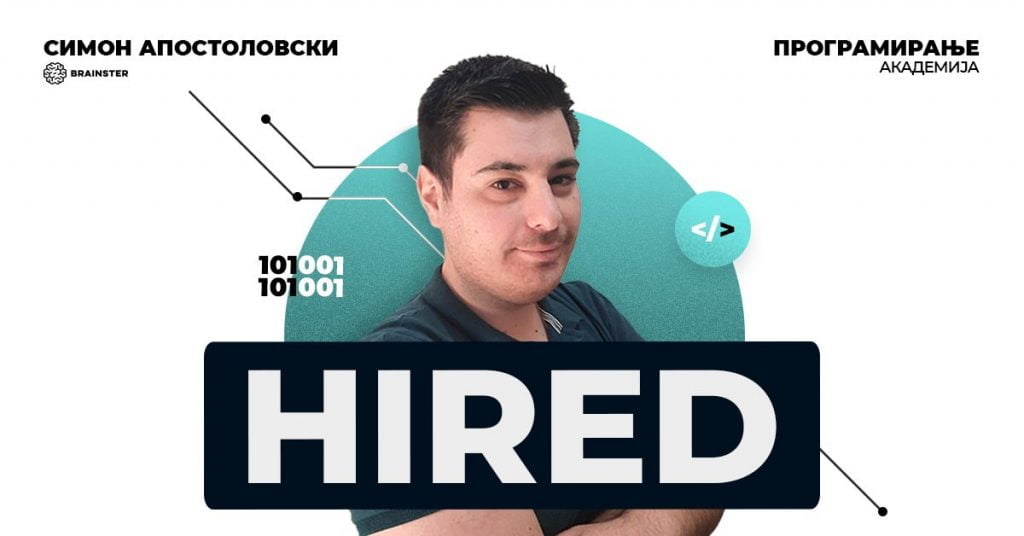 Симон Апостоловски е алумни од Академијата за Front-End програмирање, кој се реши да направи кариерна трансфорамција и се вработи веднаш по нејзиното завршување како Junior Front-End Developer. Неговото работно место е компанијата Atis, каде Симон веќе половина година ги надградува своите вештини и знаења стекнати од Академијата за програмирање.