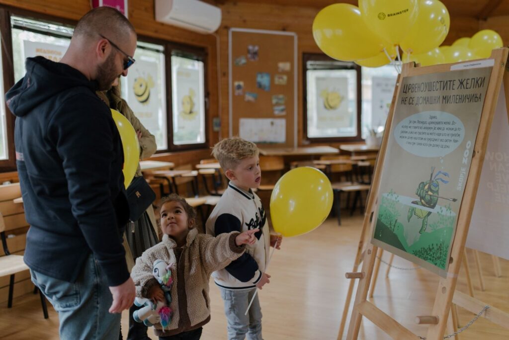 „Нашите вредни и креативни студенти најпрво работеа на дизајн на постери за дивите пчели и црвеноушестите желки, а потоа истите дизајни ги ставија во движење односно креираа анимација на самиот дизајн. На овој настан ги изложуваме нивните уникатни дизајни и пренесуваме порака за тоа колку се важни овие животни за нашиот екосистем. Изложбата е заеднички настан на кој изложуваме вкупно 36 постери изработени од студентите, меѓу кои се и двете победнички решенија за секое од наведените животни. Се надеваме ќе има голем број на посетители кои ќе видат што можат да направат нашите студенти и ќе дознаат корисни информации за улогата на овие животни во природата“, вели Јована Joвановска Кануркова од тимот „Партнерства“ од Brainster.