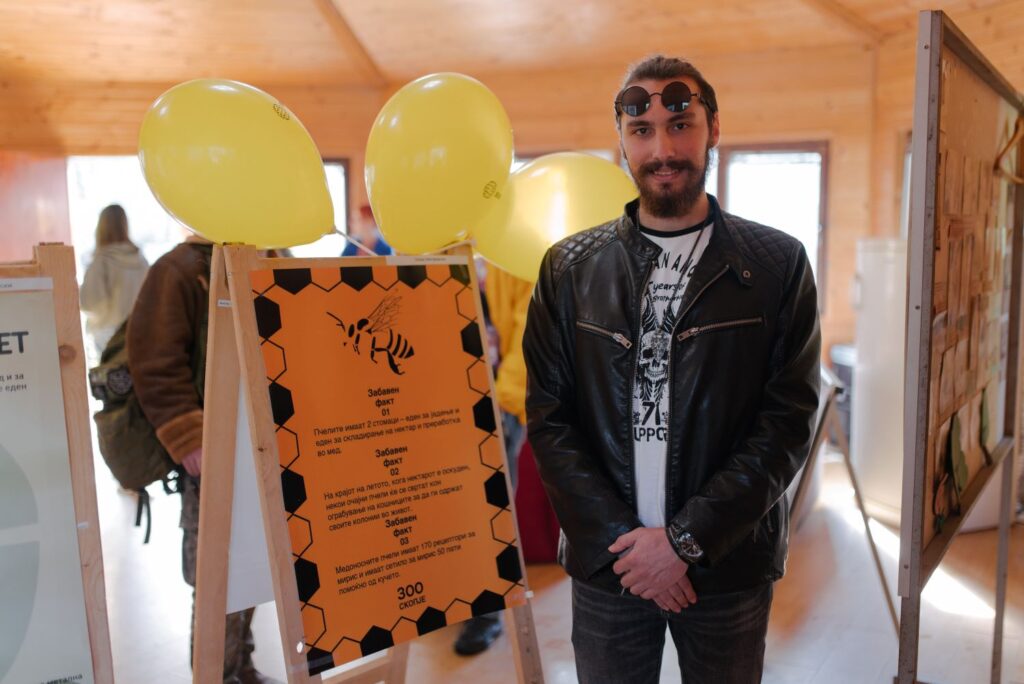 „Откако почнаа да доаѓаат повеќе пчели тука на цвеќињата, забележавме дека децата многу ги загледуваат, прашуваат, ама немаат никакви информации, немаме информативна табла за пчели. Затоа, сметавме дека интересен постер со едукативни пораки и интересни факти за пчелите е одлично решение за дополнителна едукација“, вели Иванов.