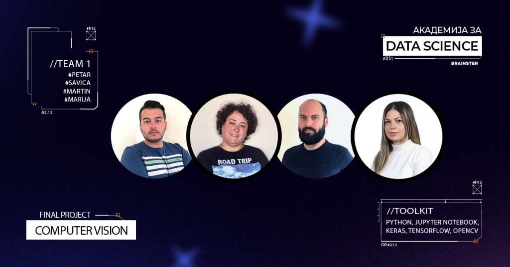 Тимот кој успешно ја заврши оваа задача и ја комплетираше Академијата за Data Science се состои од членовите: Петар Урџанов, Марија Илиевска, Савица Неделковска и Мартин Крстески.