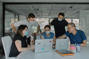 Денес ќе се запознаеме со Тим 1 кој работеше на Computer Vision проект, односно модел што препознава лица со и без маски во живо и притоа им ја утврдува возраста. Дел од Tим 1 се триото што ни доаѓа од НЛБ Банка – Иван Вукелиќ, Теодора Живковиќ и Димитар Михајлов кои работат во секторот на бизнис/финансиска анализа, Ангела Васовска – Советник за изготвување проекции во Министерство за финансии и Никола Настев – активен студент на ФИНКИ.