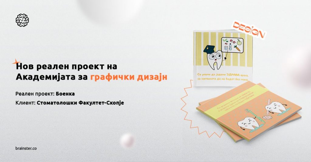 Главната задача на студентите од Академијата за графички дизајн беше креирање на боенка која е наменета за деца од предучилишна и училишна возраст, како дел од кампањата на Стоматолошки факултет, со цел запознавање со важноста на оралното здравје кај оваа таргет група. Освен боенката, студентите креираа и постер дизајни кои ќе се користат на социјалните медиуми и низ самите училишта.