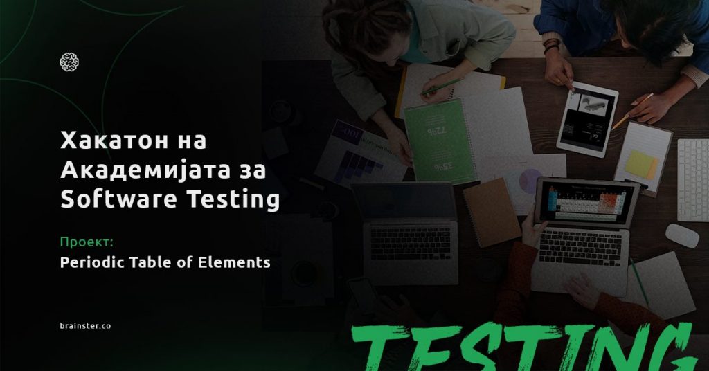 Проектот на којшто работеа студентите од Академијата за Software Testing на својот прв хакатон е „Periodic Table of Elements“, односно интерактивна веб-базирана табела со информации за елементите од периодниот систем, за која студентите требаше да изготват целосни bug репорти.
