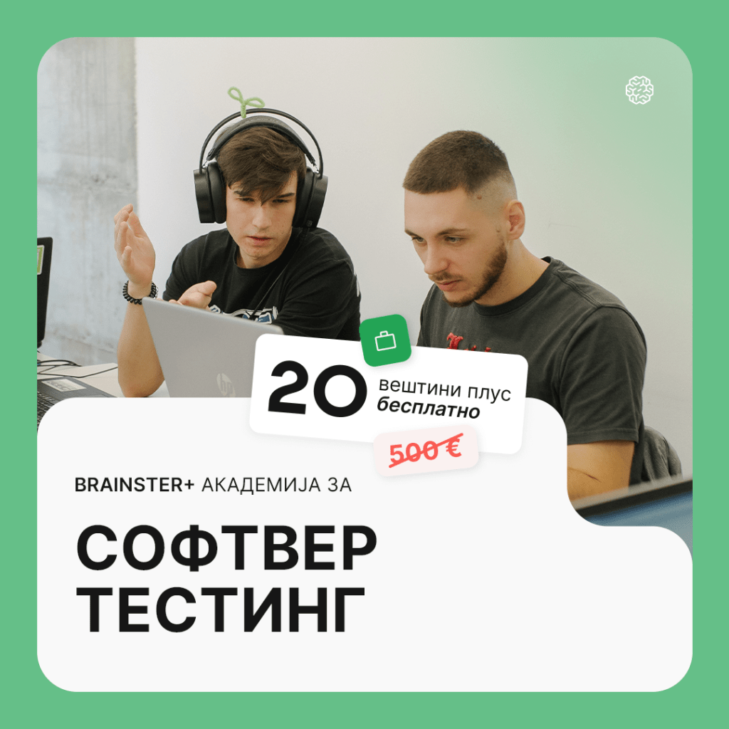 Со новата Brainster + Академија за Software Testing за 0 денари ти обезбедуваме дополнителни 20 курса кои ќе те издвојат од конкуренцијата во светот на софтверското тестирање.