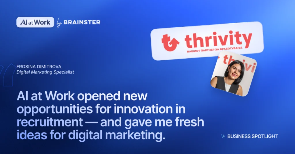 “At Thrivity, we already use modern software and AI tools in our recruitment processes, but additional knowledge is always valuable. We see Brainster as a trusted partner, and this was the right moment to expand our expertise and explore new ways to apply AI even more effectively.”